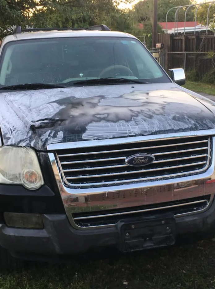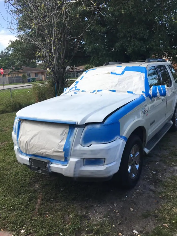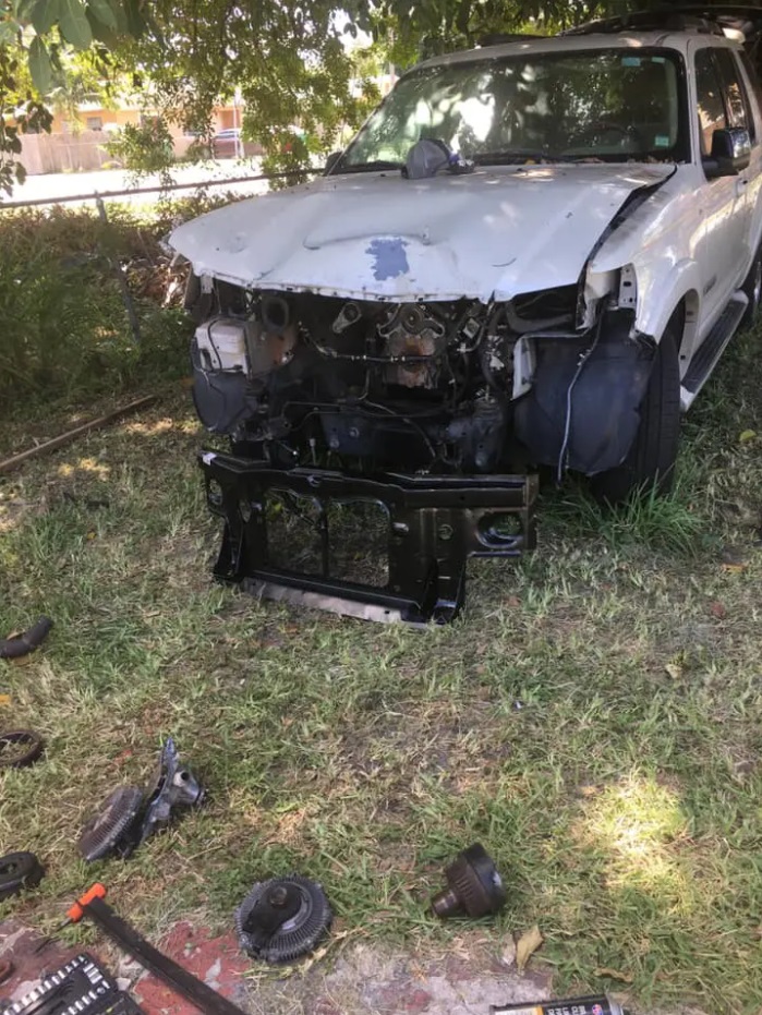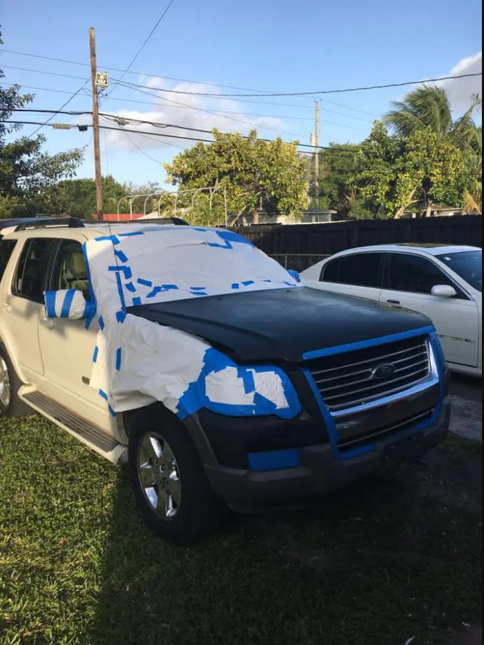 «Voy a dejar estas fotos por aquí pero primero quisiera hacer esta pequeña anécdota», dijo Blanco. «La cuestión es que dicho carrito lo iban a vender para chatarra por 200 (dólares) y yo dije asombrado: ‘En serio, na, ustedes se están burlando de mí porque estoy acabado de llegar’, bueno, pues resulta ser que tanto di que mi familia me regaló el carro, pero no sin antes decirme loco». Según cuenta Blanco, cuando Blanco llegó al país norteamericano, su familiar que había chocado esta Ford Explorer quería venderlo como chatarra en USD 200, pero insistió en que se lo regalaran, ya que afirmó que podría repararlo y dejarlo como nuevo.